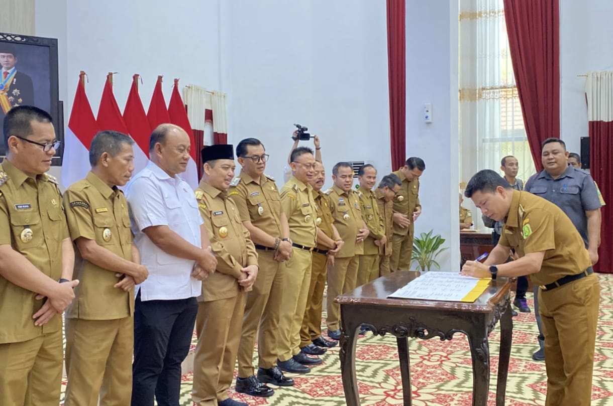 IMBANG (Sambas) – Pemerintah Kabupaten Sambas menunjukkan komitmen nyata dalam penanganan stunting dan malnutrisi dengan menandatangani Nota Kesepahaman (MoU) pelaksanaan Program Makan Bergizi Gratis (MBG) bersama Badan Gizi Nasional. Penandatanganan dilakukan Bupati Sambas, Satono bersama seluruh bupati/wali kota se-Kalimantan Barat di Balai Petitih Kantor Gubernur Kalbar, Selasa (3/6/2025).